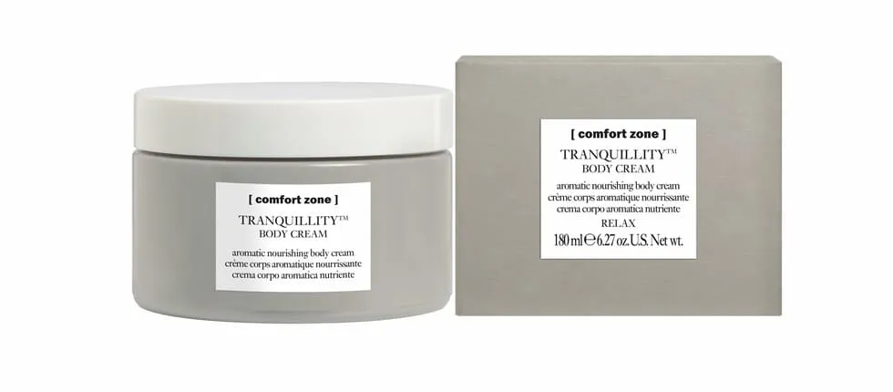 La crema tranquility de Comfort Zone tiene un aroma que transmite tranquilidad y pausa, ideal para aplicar al finalizar el día y recrear un momento de bienestar. Formulada con aceite de amaranto, aporta la hidratación que necesita una piel seca, aportando una sensación de bienestar al momento. De la misma línea, puedes encontrar la loción corporal Tranquillity Body Lotion de rápida absorción, pero también destinada a tratar la deshidratación y aliviar tensiones.
